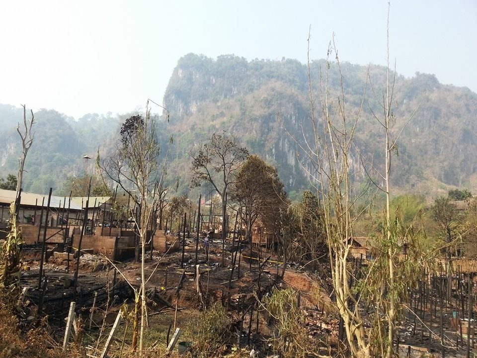 Some of the houses that burnt down had just been repaired with new shelter materials. Among the destroyed houses were one house of a TBC shelter staff member as well as the Karen Women’s Organization (KWO) office.